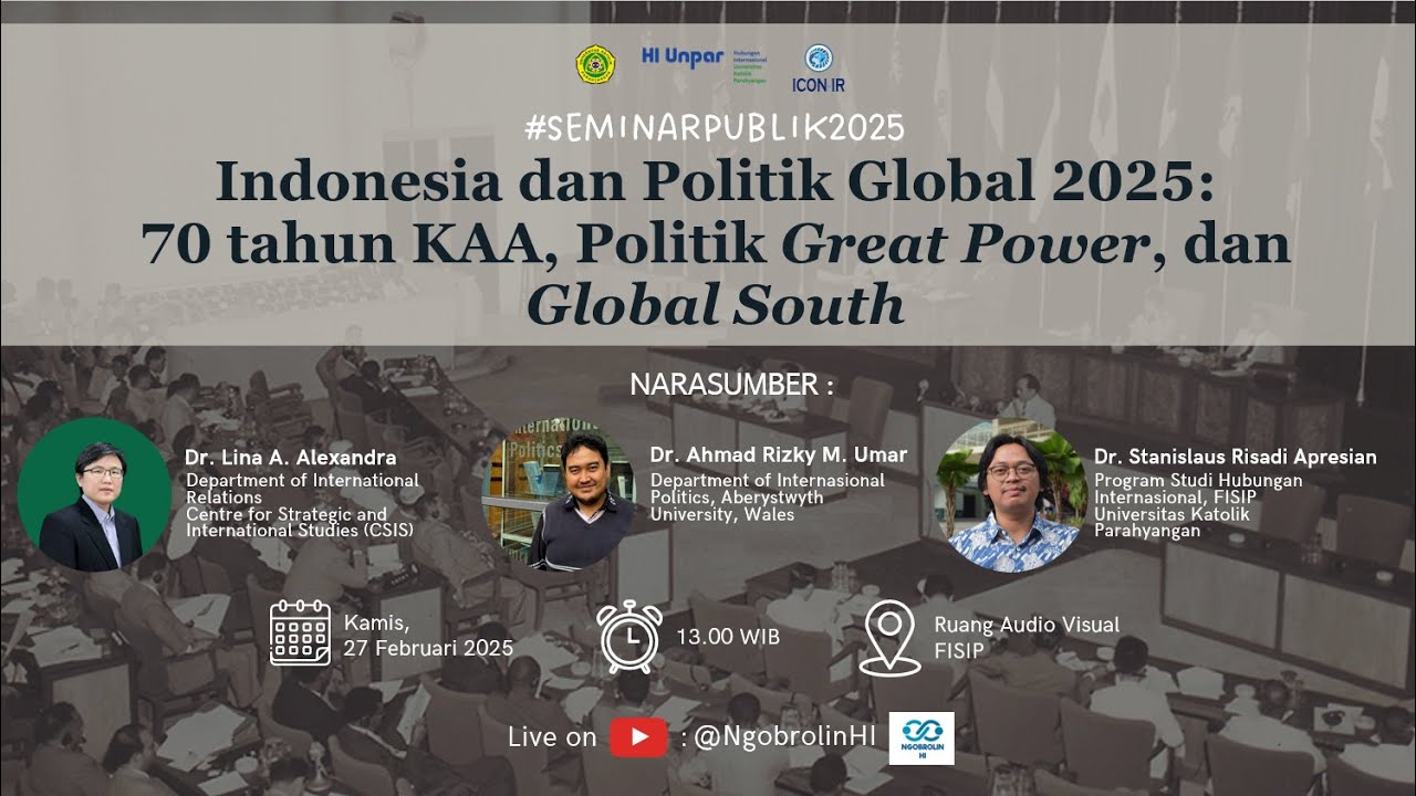 Step into the arena of global politics at the 5th Biennial International Conference on International Relations (ICON-IR) 2026, where the voices of marginalized states rise to challenge a world dominated by the aggressive self-interests of major powers. This conference—hosted by the Parahyangan Center for International Studies (PACIS)—calls on scholars, policymakers, and practitioners to unite, exchange ideas, and explore how resilient and innovative lesser powers can revitalize multilateralism and reshape international relations. Whether you aim to address global challenges, share breakthroughs, or offer practical solutions, ICON-IR 2026 invites you to spark meaningful change and help restore balance and justice to the global order.